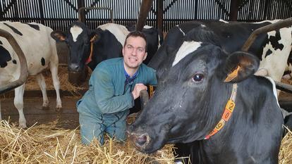 Le matin, toujours sur son smartphone, il voit si les vêlages se sont bien passés la nuit. Et en cas de souci, une alerte l’incite à se rendre sur place immédiatement. «Les colliers, couplés aux données récoltées par le robot de traite, permettent ainsi d’intervenir plus vite et plus tôt. On soigne les vaches davantage de façon préventive en utilisant des plantes au lieu des antibiotiques. C’est de la technique au service de l’équipe», ajoute l’éleveur, désignant à la fois sa centaine de prim’Holstein, au pelage blanc et noir, et ses collaborateurs, un salarié, un apprenti, et, de temps en temps, ses parents.